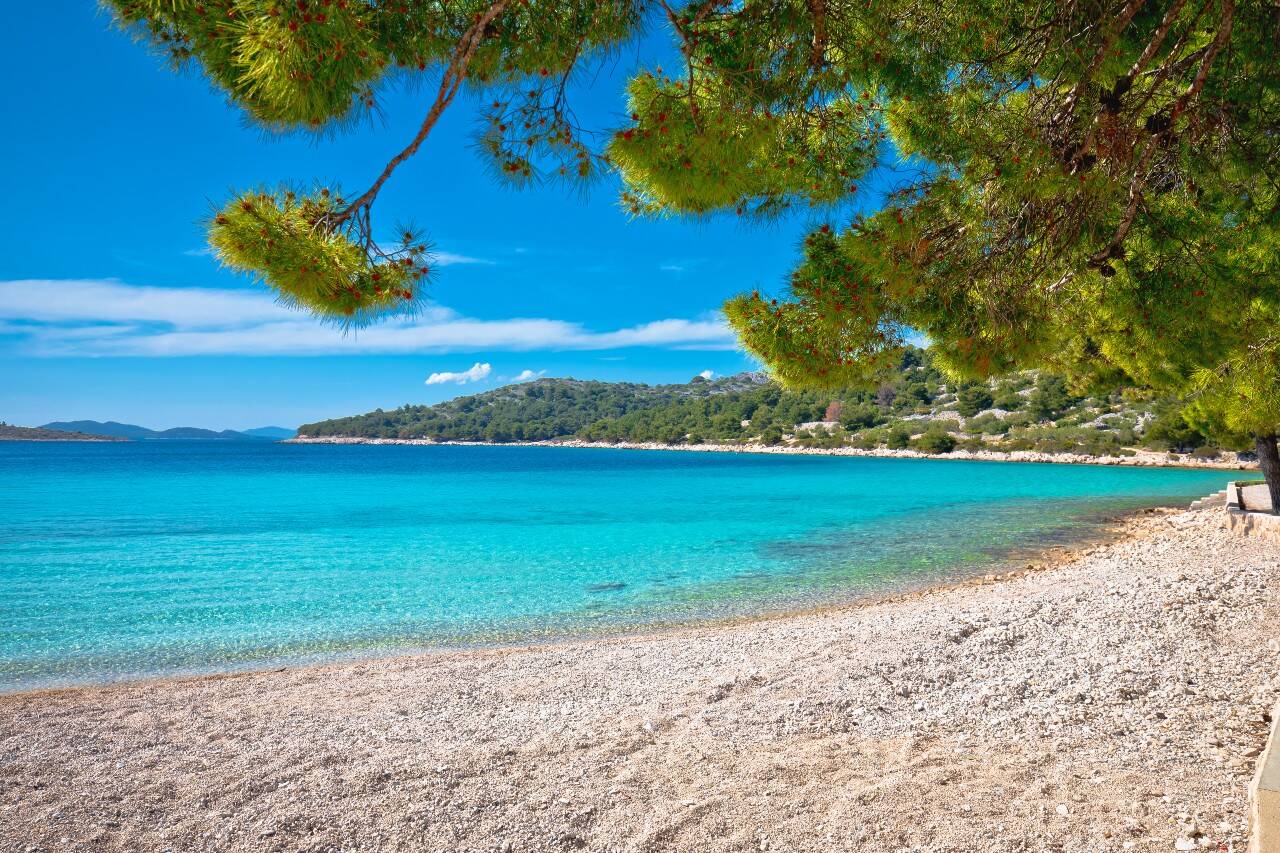 Pomalu se začínáme vracet. Cestou ze Skradinu se zastavte na koupání v zátoce Jadrija nebo u vesničky Šepurine na Prviči. Naším dnešním cílem je ale Murter – krásný, zelený ostrov spojený s pevninou zvedacím mostem ve městě Tisno.