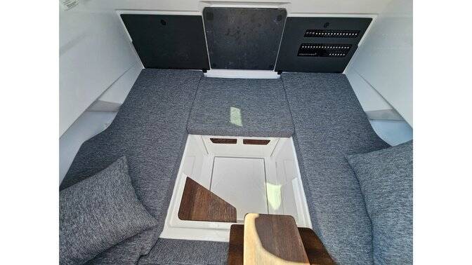 Motorová loď Axopar 29 XC Cross Cabin Ema, rok spuštění na vodu 2024 kotví v marině Trogir, Yachtclub Seget (Marina Baotić), Splitský region (Chorvatsko), Chorvatsko. Počet kajut: 1 , může ubytovat celkem: 2 a má toalet: 1 . Povlečení a kuchyňské vybavení jsou zahrnuty v ceně.