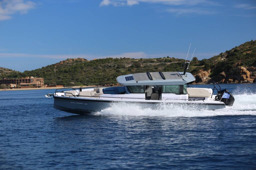 Motorová loď Axopar 37 XC Cross Cabin Bugs Bunny, rok spuštění na vodu 2023 kotví v marině Palaia Fokaia Port, Athens area/Saronic/Peloponese, Řecko. Počet kajut: 2 , může ubytovat celkem: 6 a má toalet: 1 . Povlečení a kuchyňské vybavení jsou zahrnuty v ceně.