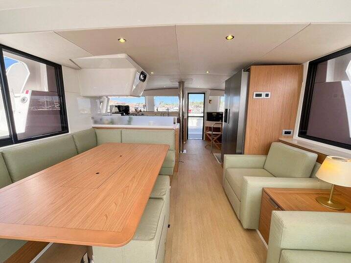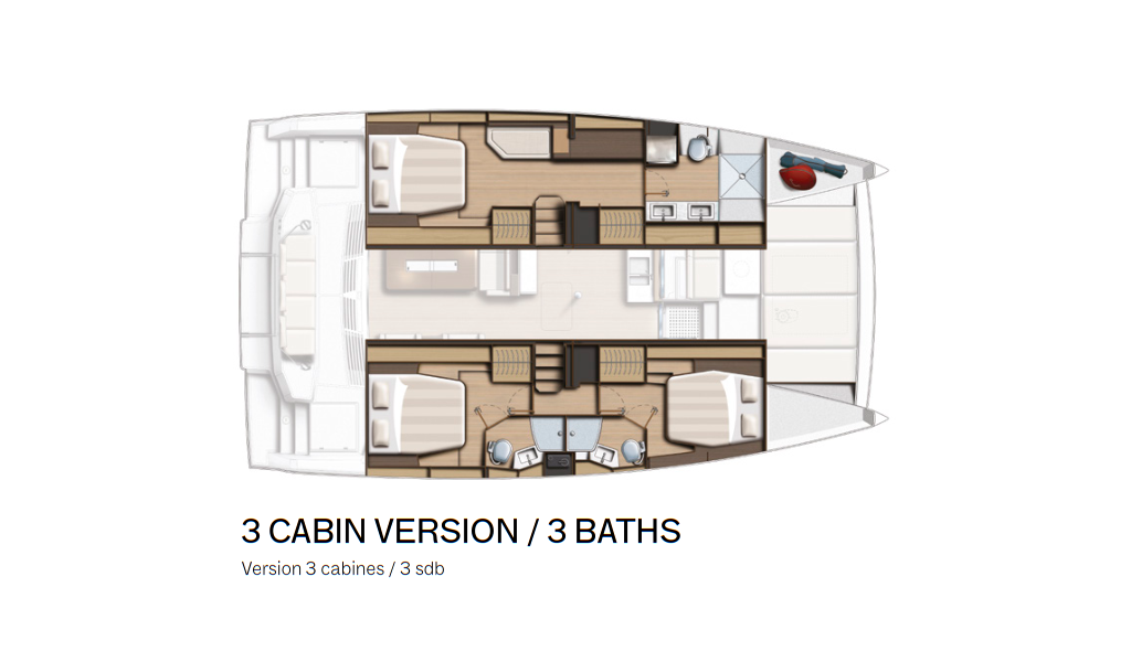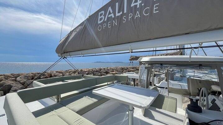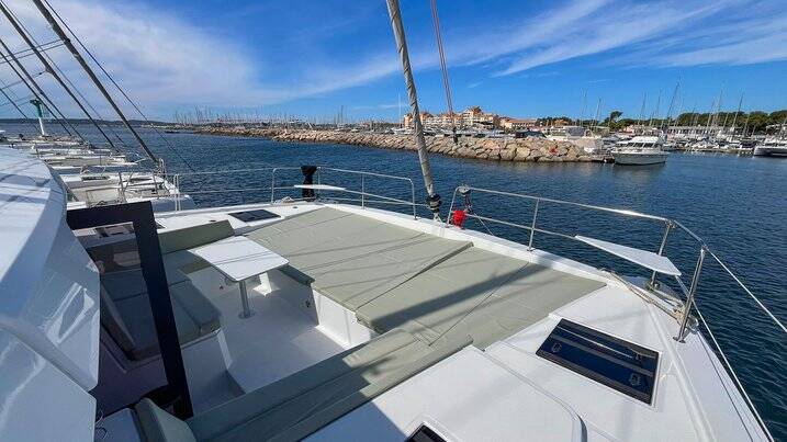 Katamarán Bali 4.4 Obiwan, rok spuštění na vodu 2025 kotví v marině Marines de Cogolin, Provence-Alpes-Côte d'Azur, Francie. Počet kajut: 3 , může ubytovat celkem: 6 a má toalet: 3 . Povlečení a kuchyňské vybavení jsou zahrnuty v ceně.