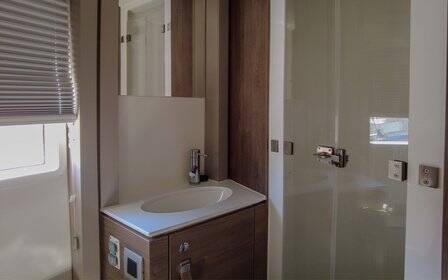 Katamarán Bali 4.4 Seasight, rok spuštění na vodu 2023 kotví v marině Hyeres Port Saint Pierre, Provence-Alpes-Côte d'Azur, Francie. Počet kajut: 4 + 1 , může ubytovat celkem: 8 + 1 a má toalet: 5 . Povlečení a kuchyňské vybavení jsou zahrnuty v ceně.