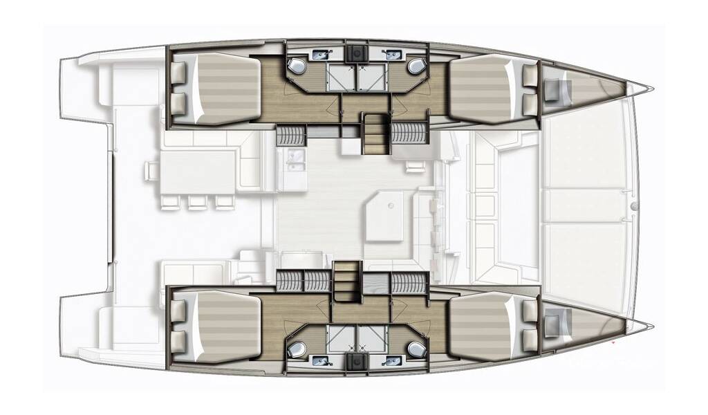 Katamarán Bali 4.5 Albert, rok spuštění na vodu 2020 kotví v marině Palma de Mallorca, Pantalan del Mediterraneo, Baleáry (Španělsko), Španělsko . Počet kajut: 4 + 1 , může ubytovat celkem: 8 + 2 + 2 a má toalet: 4 . Povlečení a kuchyňské vybavení jsou zahrnuty v ceně.