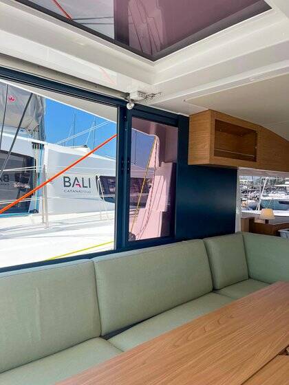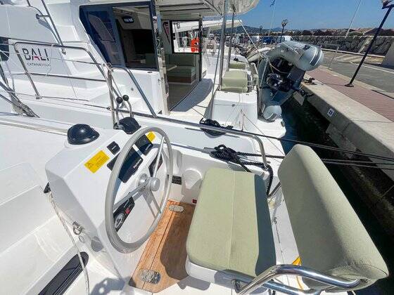 Katamarán Bali Catsmart Hope, rok spuštění na vodu 2025 kotví v marině Hyeres Port Saint Pierre, Provence-Alpes-Côte d'Azur, Francie. Počet kajut: 4 , může ubytovat celkem: 8 + 2 a má toalet: 2 . Povlečení a kuchyňské vybavení jsou zahrnuty v ceně.