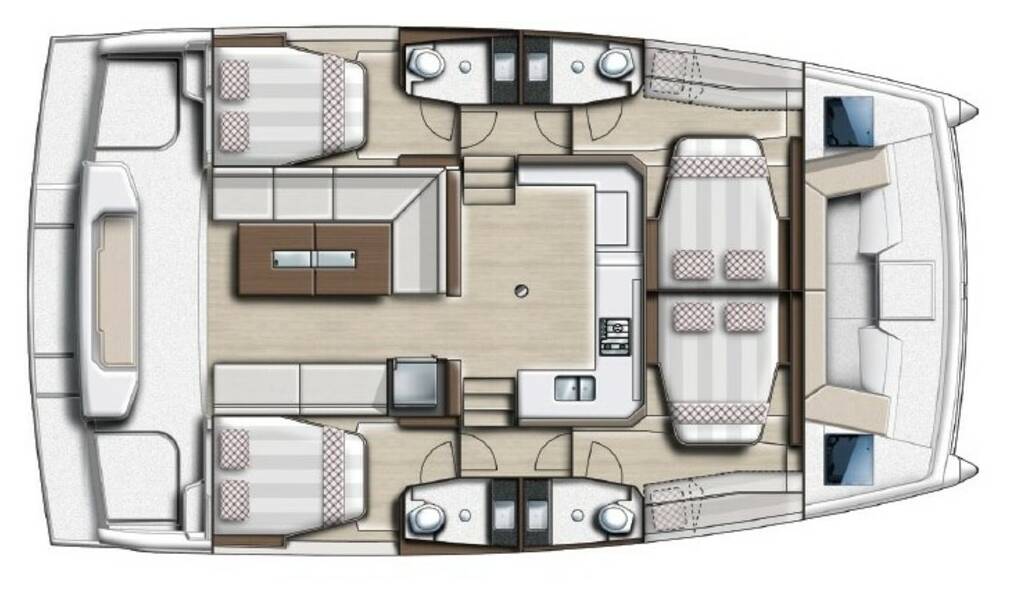 Katamarán Bali Catspace Helona, rok spuštění na vodu 2022 kotví v marině Volos, Skiathos/Sporades, Volos, Řecko. Počet kajut: 4 , může ubytovat celkem: 10 + 2 a má toalet: 4 . Povlečení a kuchyňské vybavení jsou zahrnuty v ceně.