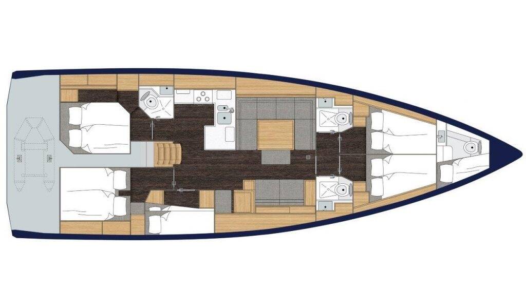 Plachetnice Bavaria C50 Elli, rok spuštění na vodu 2020 kotví v marině Athens, Alimos marina, Athens area/Saronic/Peloponese, Řecko. Počet kajut: 5 + 1 , může ubytovat celkem: 10 + 2 a má toalet: 3 + 1 . Povlečení a kuchyňské vybavení jsou zahrnuty v ceně.
