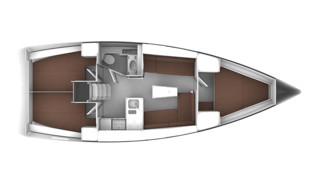 Plachetnice Bavaria Cruiser 37 Sayra, rok spuštění na vodu 2024 kotví v marině Murter, Marina Mechanic Nautic, Šibenický region (Chorvatsko), Chorvatsko. Počet kajut: 3 , může ubytovat celkem: 6 + 1 a má toalet: 1 . Povlečení a kuchyňské vybavení jsou zahrnuty v ceně.