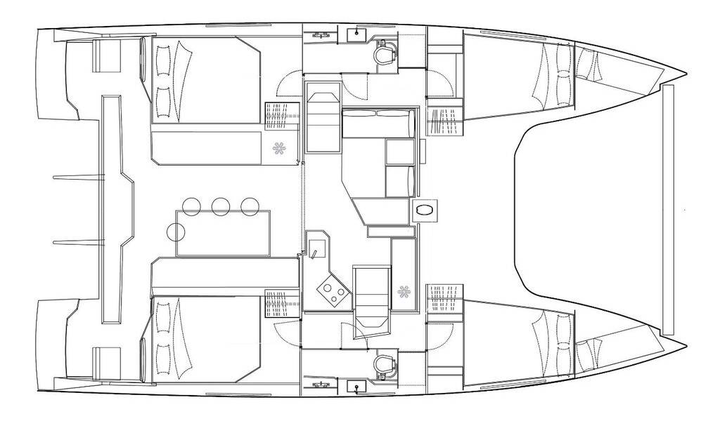 Katamarán Bavaria Nautitech 40 Open Orion, rok spuštění na vodu 2019 kotví v marině Pula, Marina Polesana, Istrie (Chorvatsko), Chorvatsko. Počet kajut: 4 + 2 , může ubytovat celkem: 8 + 2 a má toalet: 2 . Povlečení a kuchyňské vybavení jsou zahrnuty v ceně.