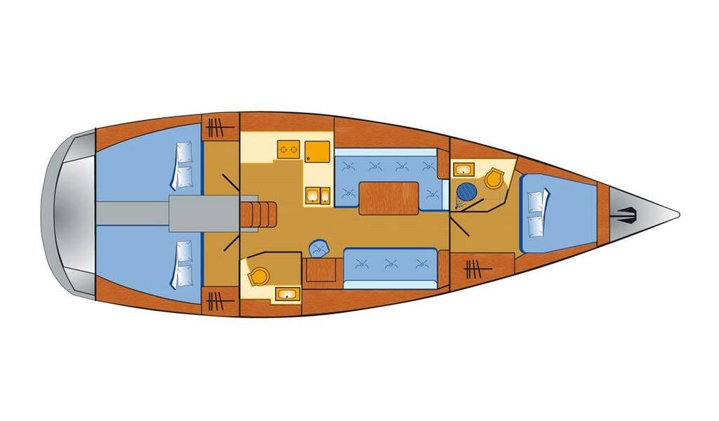 Plachetnice Dufour 40E Passion, rok spuštění na vodu 2016 kotví v marině Marina Flensburg Sonwik, Schleswig-Holstein (Německo), Německo. Počet kajut: 3 , může ubytovat celkem: 6 a má toalet: 2 . Povlečení a kuchyňské vybavení jsou zahrnuty v ceně.