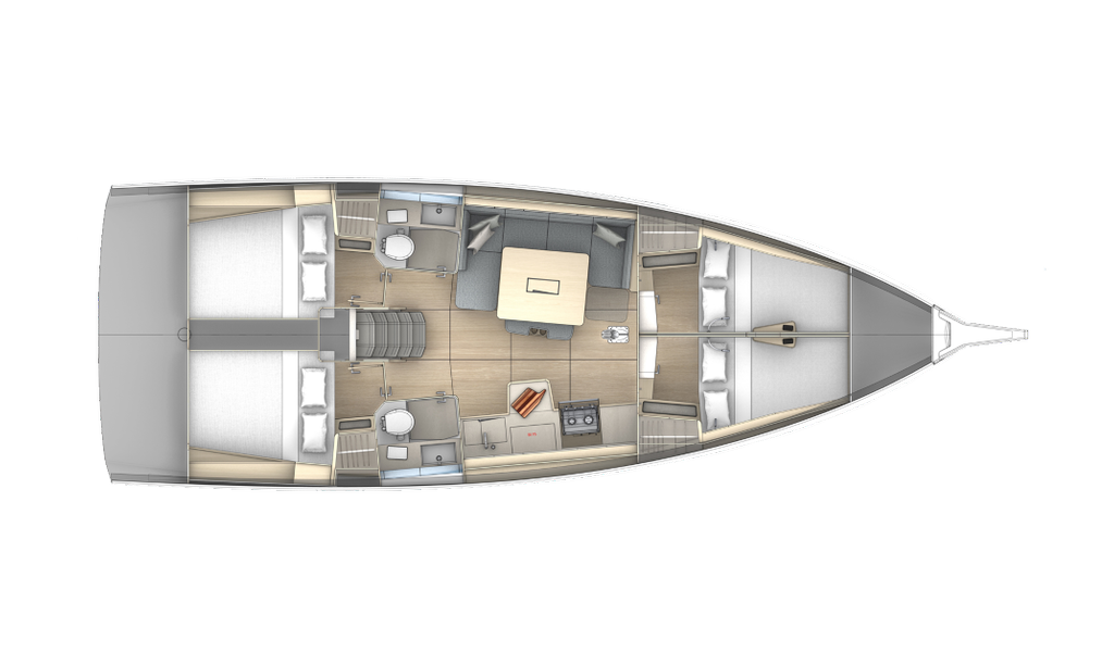 Plachetnice Dufour 41 Aniela, rok spuštění na vodu 2023 kotví v marině ACI Marina Trogir, Splitský region (Chorvatsko), Chorvatsko. Počet kajut: 4 , může ubytovat celkem: 8 a má toalet: 2 . Povlečení a kuchyňské vybavení jsou zahrnuty v ceně.