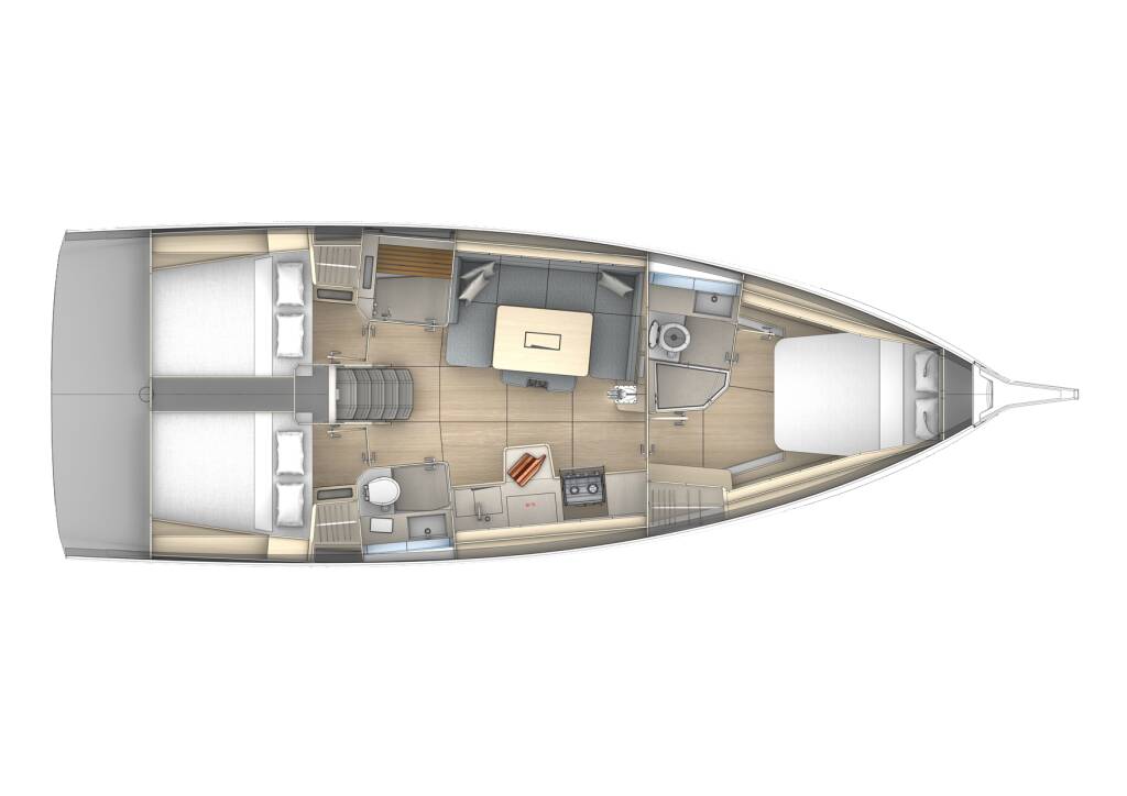 Plachetnice Dufour 41 Gassillage, rok spuštění na vodu 2025 kotví v marině Golf Juan, Provence-Alpes-Côte d'Azur, Francie. Počet kajut: 3 , může ubytovat celkem: 6 a má toalet: 2 . Povlečení a kuchyňské vybavení jsou zahrnuty v ceně.