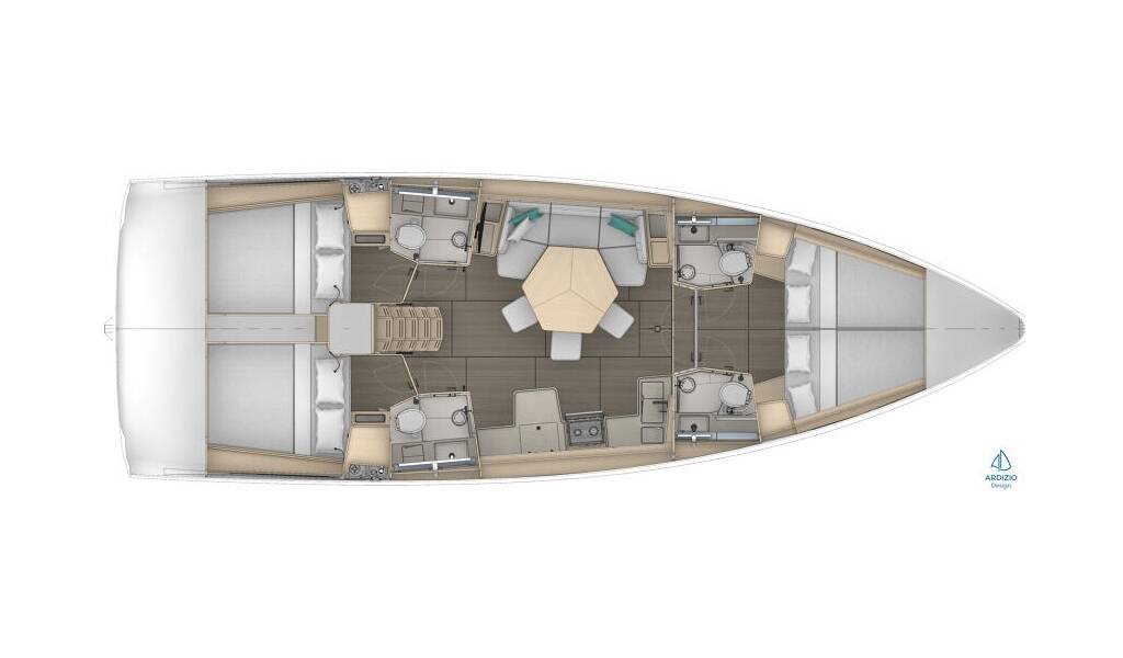 Plachetnice Dufour 44 Blues, rok spuštění na vodu 2025 kotví v marině Trogir, Marina Trogir (ex.SCT), Splitský region (Chorvatsko), Chorvatsko. Počet kajut: 4 , může ubytovat celkem: 8 + 2 a má toalet: 4 . Povlečení a kuchyňské vybavení jsou zahrnuty v ceně.