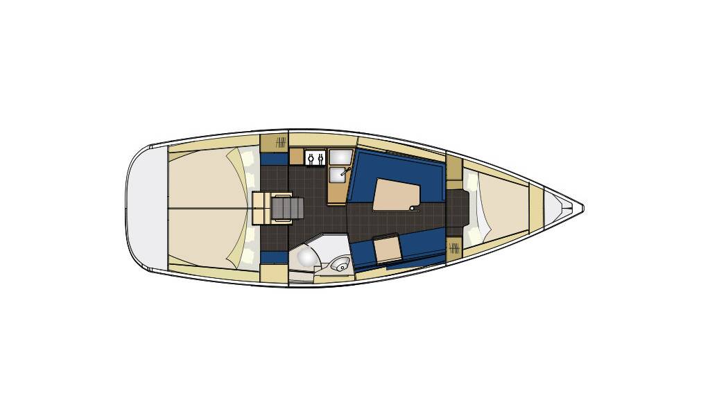 Plachetnice Elan 354 Impression Orange AS, rok spuštění na vodu 2014 kotví v marině Izola, Primorsko Slovinsko), Slovinsko. Počet kajut: 3 , může ubytovat celkem: 6 + 2 a má toalet: 1 . Povlečení a kuchyňské vybavení jsou zahrnuty v ceně.