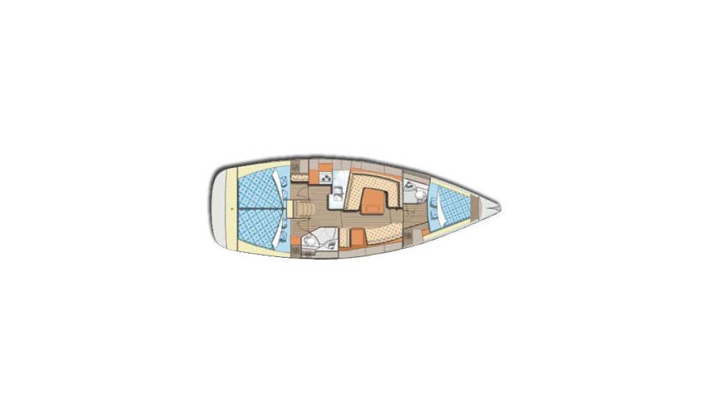 Plachetnice Elan 384 Impression Orca O., rok spuštění na vodu 2007 kotví v marině Izola, Primorsko Slovinsko), Slovinsko. Počet kajut: 3 , může ubytovat celkem: 6 + 2 a má toalet: 2 . Povlečení a kuchyňské vybavení jsou zahrnuty v ceně.