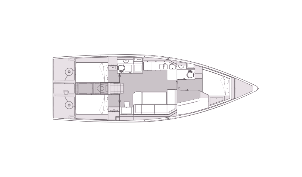 Plachetnice Elan Impression 45 (ex. 43) Nika, rok spuštění na vodu 2024 kotví v marině ACI Marina Split, Splitský region (Chorvatsko), Chorvatsko. Počet kajut: 4 , může ubytovat celkem: 8 + 2 a má toalet: 2 . Povlečení a kuchyňské vybavení jsou zahrnuty v ceně.