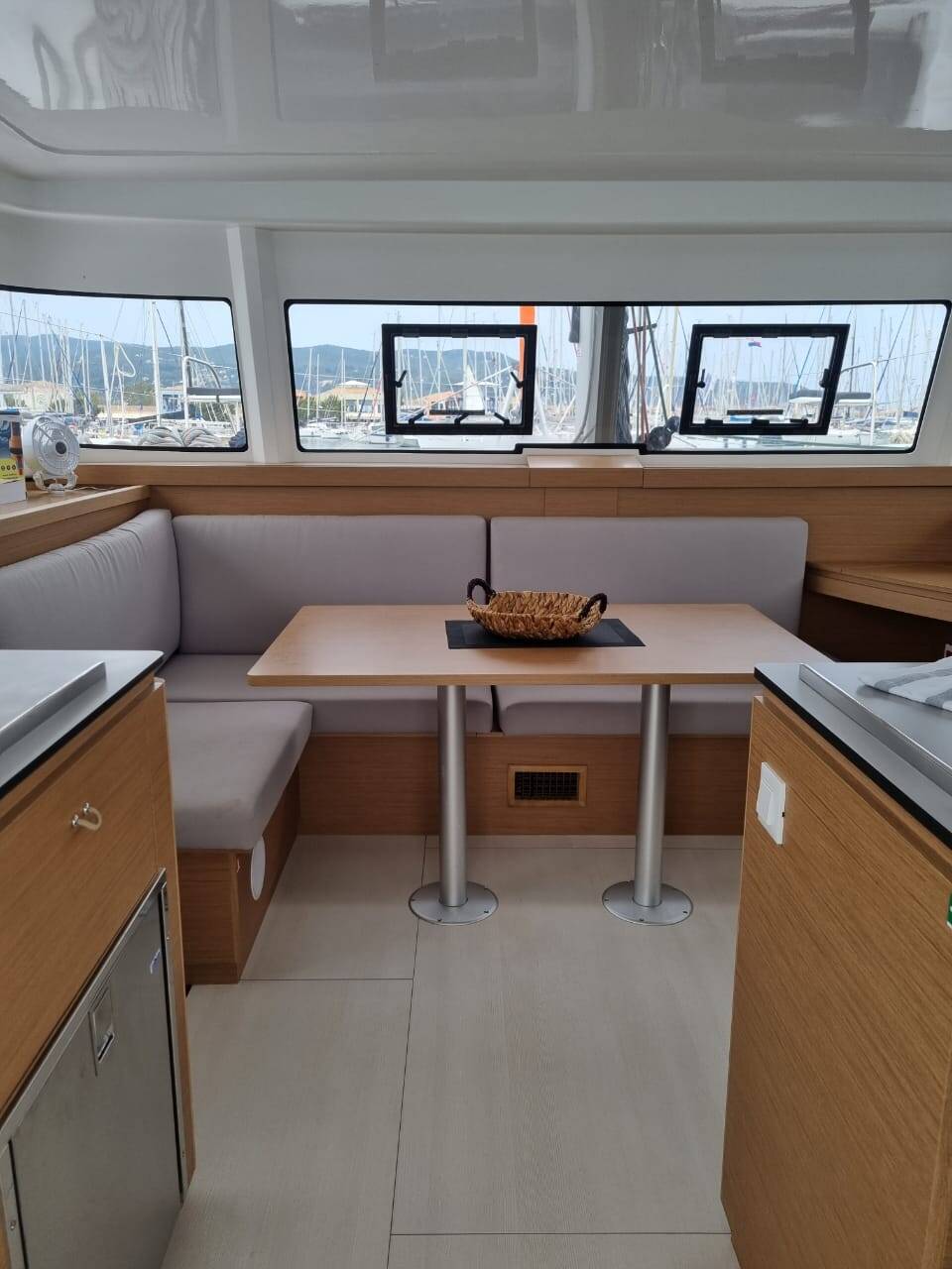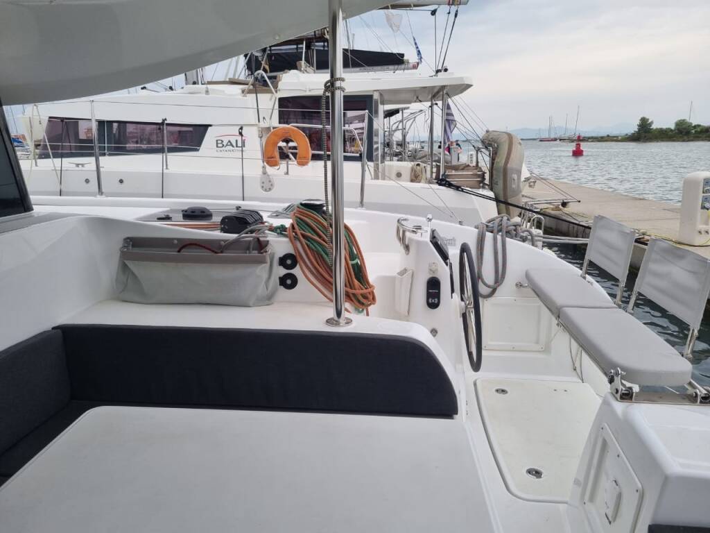 Katamarán Excess 11 Ad Astra, rok spuštění na vodu 2023 kotví v marině Preveza Main Port, Jónské ostrovy (Řecko), Řecko. Počet kajut: 4 + 2 , může ubytovat celkem: 8 + 2 + 2 a má toalet: 2 . Povlečení a kuchyňské vybavení jsou zahrnuty v ceně.