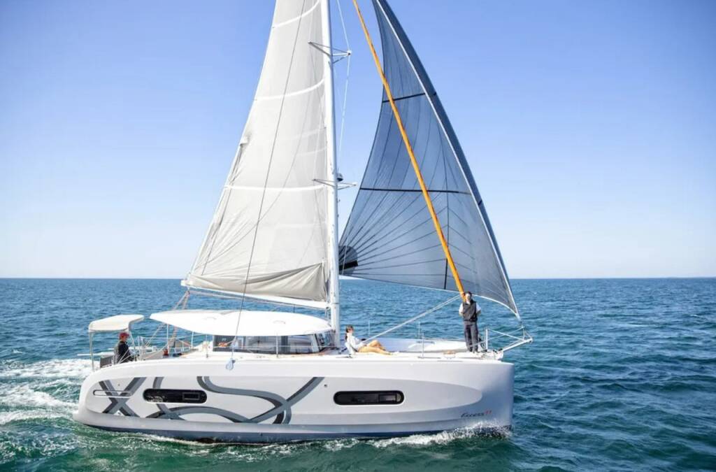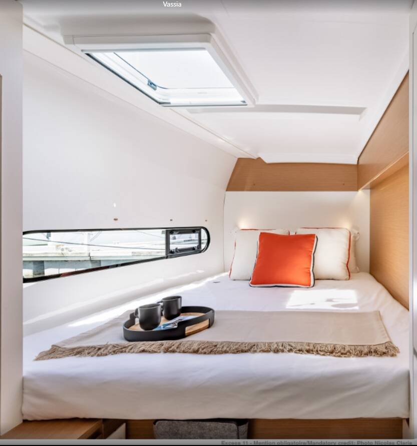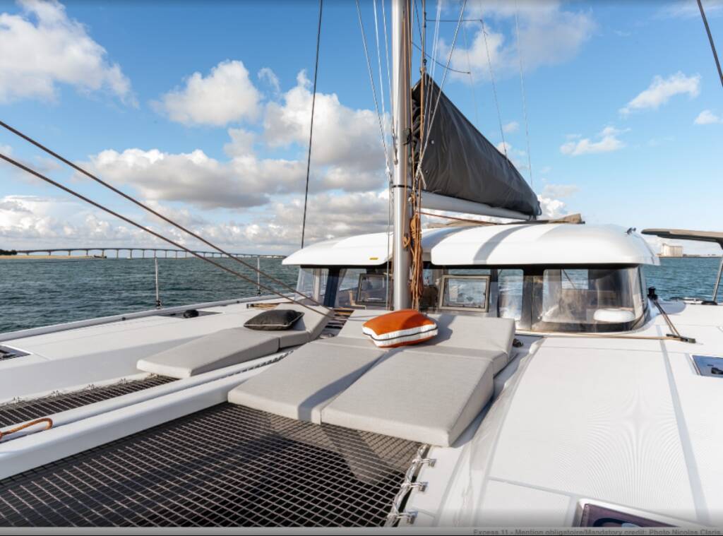 Katamarán Excess 11 Axieros II, rok spuštění na vodu 2023 kotví v marině Lefkas, Lygia Marina, Jónské ostrovy (Řecko), Řecko. Počet kajut: 4 + 1 , může ubytovat celkem: 10 a má toalet: 2 + 1 . Povlečení a kuchyňské vybavení jsou zahrnuty v ceně.