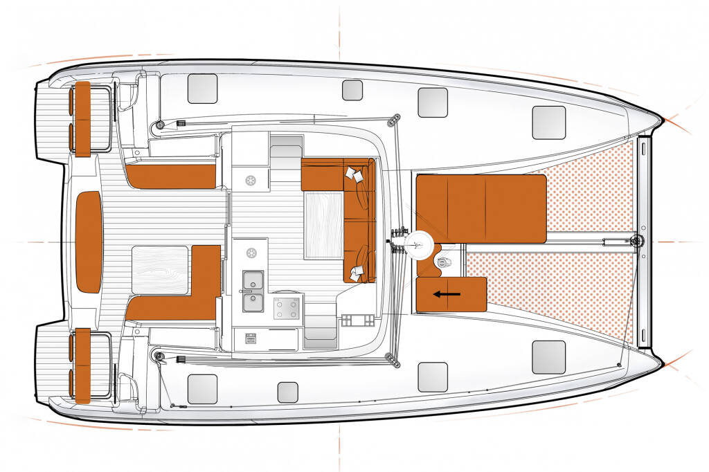 Katamarán Excess 11 Patara, rok spuštění na vodu 2022 kotví v marině Fethiye, Lykia Yacht Club, Egejský region (Turecko), Turecko . Počet kajut: 4 + 2 , může ubytovat celkem: 8 + 2 a má toalet: 2 + 1 . Povlečení a kuchyňské vybavení jsou zahrnuty v ceně.