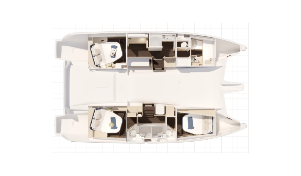 Katamarán Fountaine Pajot FP 44 Maestro CinSéLuna, rok spuštění na vodu 2026 kotví v marině St. Raphael, Provence-Alpes-Côte d'Azur, Francie. Počet kajut: 3 , může ubytovat celkem: 6 + 2 a má toalet: 3 . Povlečení a kuchyňské vybavení jsou zahrnuty v ceně.