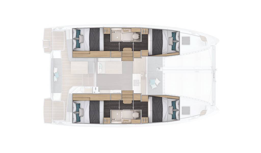 Katamarán Lagoon 38 Moana, rok spuštění na vodu 2026 kotví v marině Murter, ACI Marina Jezera, Šibenický region (Chorvatsko), Chorvatsko. Počet kajut: 4 , může ubytovat celkem: 8 + 1 a má toalet: 2 . Povlečení a kuchyňské vybavení jsou zahrnuty v ceně.