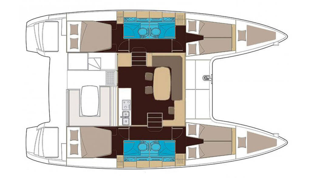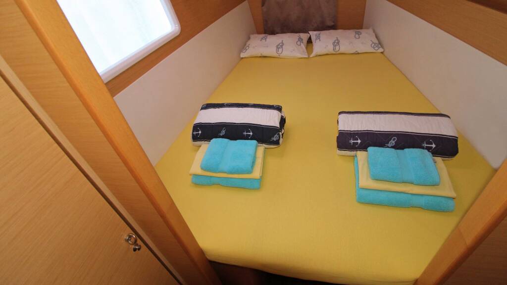 Katamarán Lagoon 400 Jazz Point, rok spuštění na vodu 2012 kotví v marině ACI Marina Split, Splitský region (Chorvatsko), Chorvatsko. Počet kajut: 4 + 2 , může ubytovat celkem: 8 + 2 a má toalet: 4 . Povlečení a kuchyňské vybavení jsou zahrnuty v ceně.