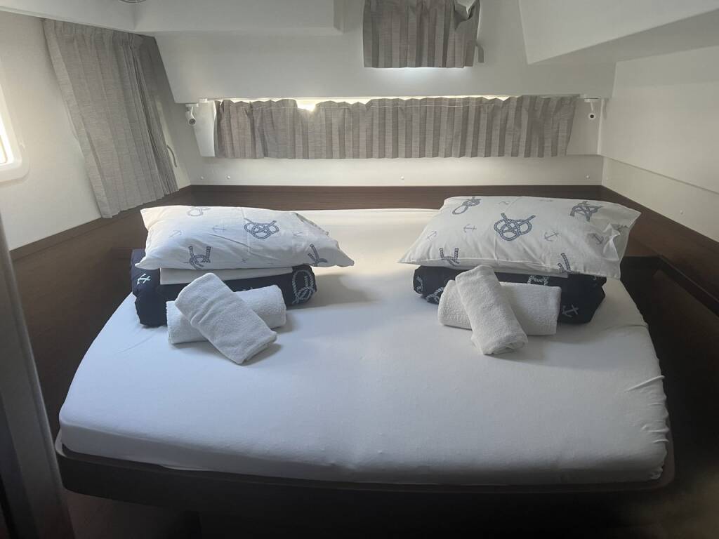 Katamarán Lagoon 42 Adventure, rok spuštění na vodu 2022 kotví v marině ACI Marina Split, Splitský region (Chorvatsko), Chorvatsko. Počet kajut: 4 + 2 , může ubytovat celkem: 8 + 2 + 2 a má toalet: 4 . Povlečení a kuchyňské vybavení jsou zahrnuty v ceně.