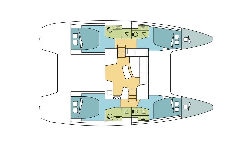 Katamarán Lagoon 42 Art of Liberty, rok spuštění na vodu 2020 kotví v marině Rhodes New Marina, Dodekany (Řecko), Řecko. Počet kajut: 4 + 2 , může ubytovat celkem: 8 + 2 a má toalet: 4 . Povlečení a kuchyňské vybavení jsou zahrnuty v ceně.