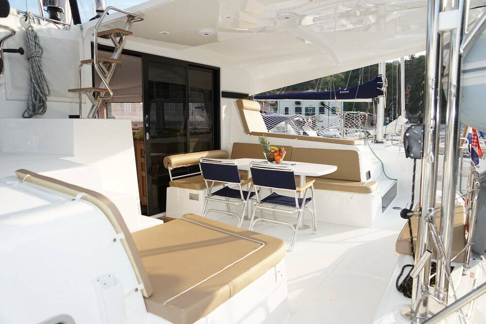 Katamarán Lagoon 42 Galapagos, rok spuštění na vodu 2017 kotví v marině Šolta – Rogač, Splitský region (Chorvatsko), Chorvatsko. Počet kajut: 4 + 1 , může ubytovat celkem: 10 + 1 a má toalet: 4 + 1 . Povlečení a kuchyňské vybavení jsou zahrnuty v ceně.