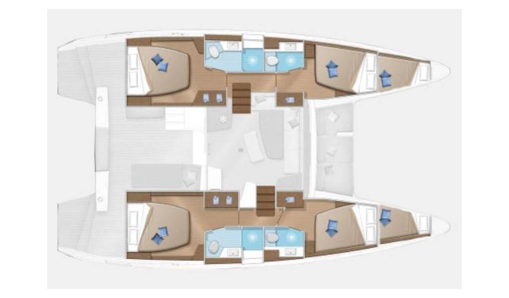 Katamarán Lagoon 42 Soffio, rok spuštění na vodu 2021 kotví v marině Göcek, Egejský region (Turecko), Turecko . Počet kajut: 4 , může ubytovat celkem: 8 + 2 a má toalet: 4 . Povlečení a kuchyňské vybavení jsou zahrnuty v ceně.