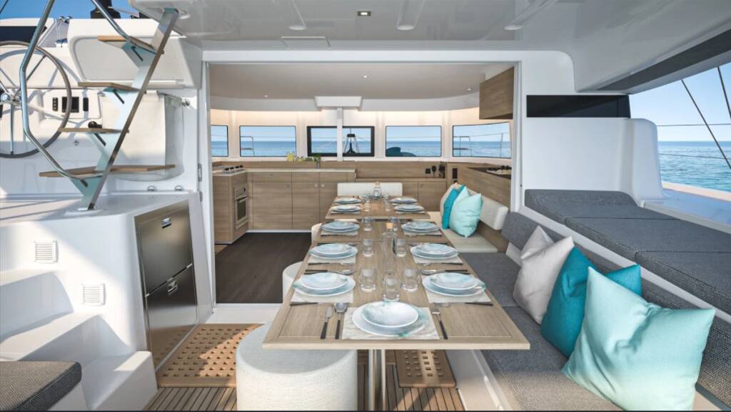 Katamarán Lagoon 43 Michelangelo, rok spuštění na vodu 2026 kotví v marině Corfu, Benitses Port Yacht Marina, Jónské ostrovy (Řecko), Řecko. Počet kajut: 4 + 2 , může ubytovat celkem: 8 + 2 + 2 a má toalet: 4 . Povlečení a kuchyňské vybavení jsou zahrnuty v ceně.