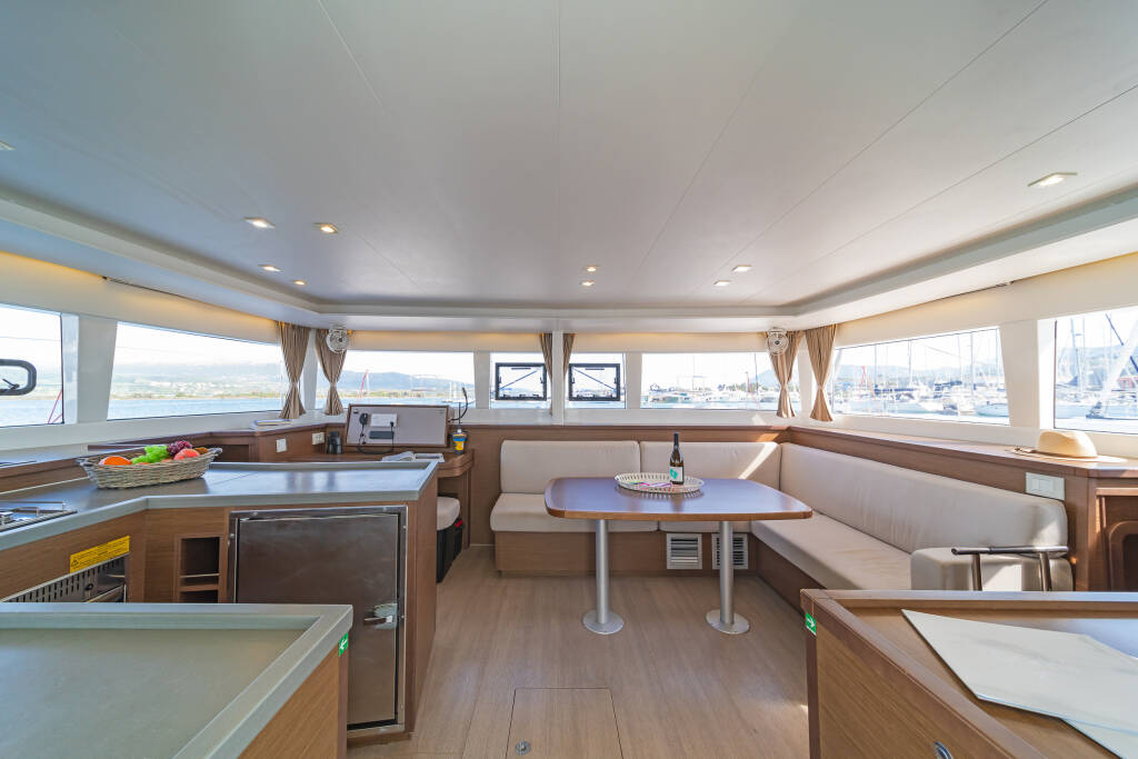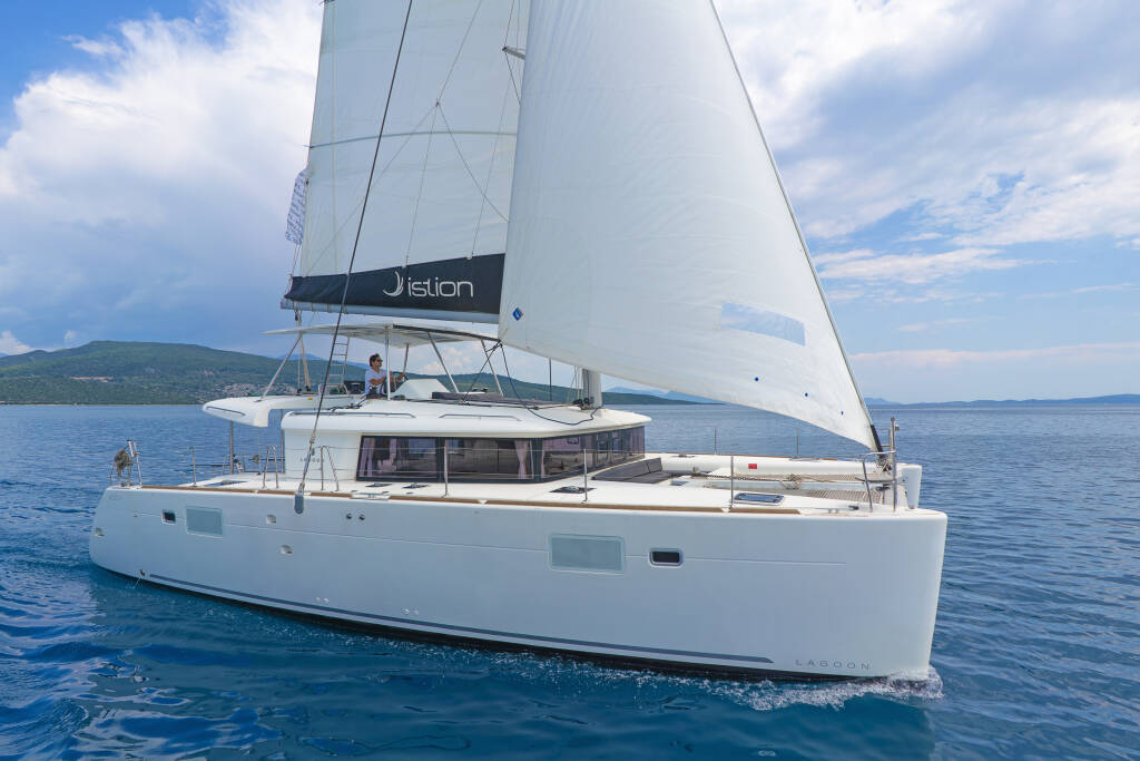 Katamarán Lagoon 450 F Cassiopeia II, rok spuštění na vodu 2019 kotví v marině Corfu, Gouvia Marina, Jónské ostrovy (Řecko), Řecko. Počet kajut: 4 + 2 , může ubytovat celkem: 8 + 2 a má toalet: 4 + 1 . Povlečení a kuchyňské vybavení jsou zahrnuty v ceně.