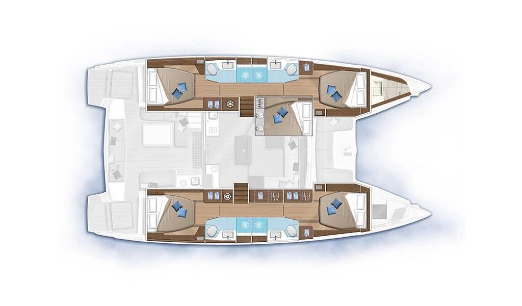 Katamarán Lagoon 50 Ugly Duck, rok spuštění na vodu 2018 kotví v marině Sukosan, D-Marin Dalmacija Marina, Zadarský region (Chorvatsko), Chorvatsko. Počet kajut: 5 + 1 , může ubytovat celkem: 10 + 1 + 1 a má toalet: 4 + 1 . Povlečení a kuchyňské vybavení jsou zahrnuty v ceně.