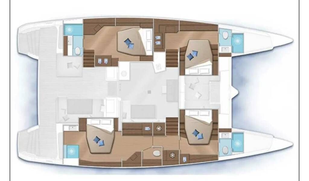 Katamarán Lagoon 52 F Sealion, rok spuštění na vodu 2018 kotví v marině Phuket, Yacht Haven Marina, Phuket (Thajsko), Thajsko . Počet kajut: 4 + 1 , může ubytovat celkem: 8 + 2 a má toalet: 4 + 1 . Povlečení a kuchyňské vybavení jsou zahrnuty v ceně.