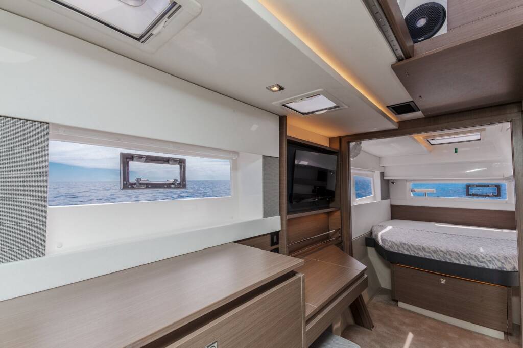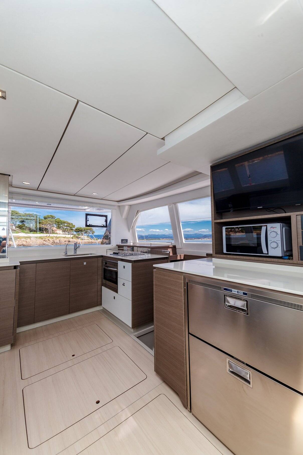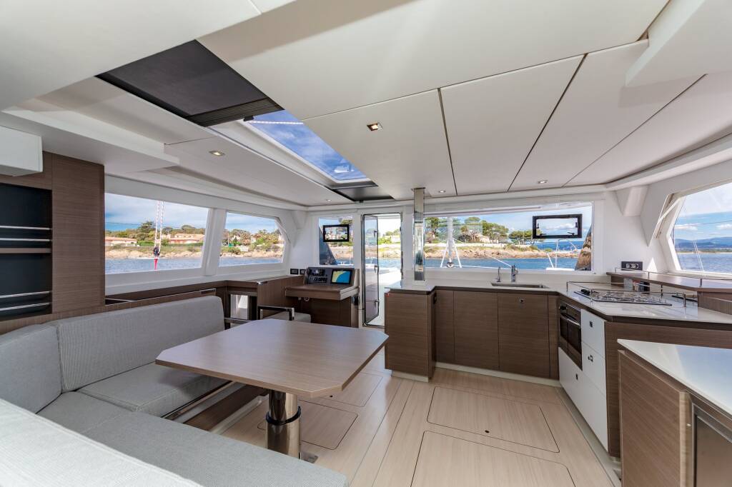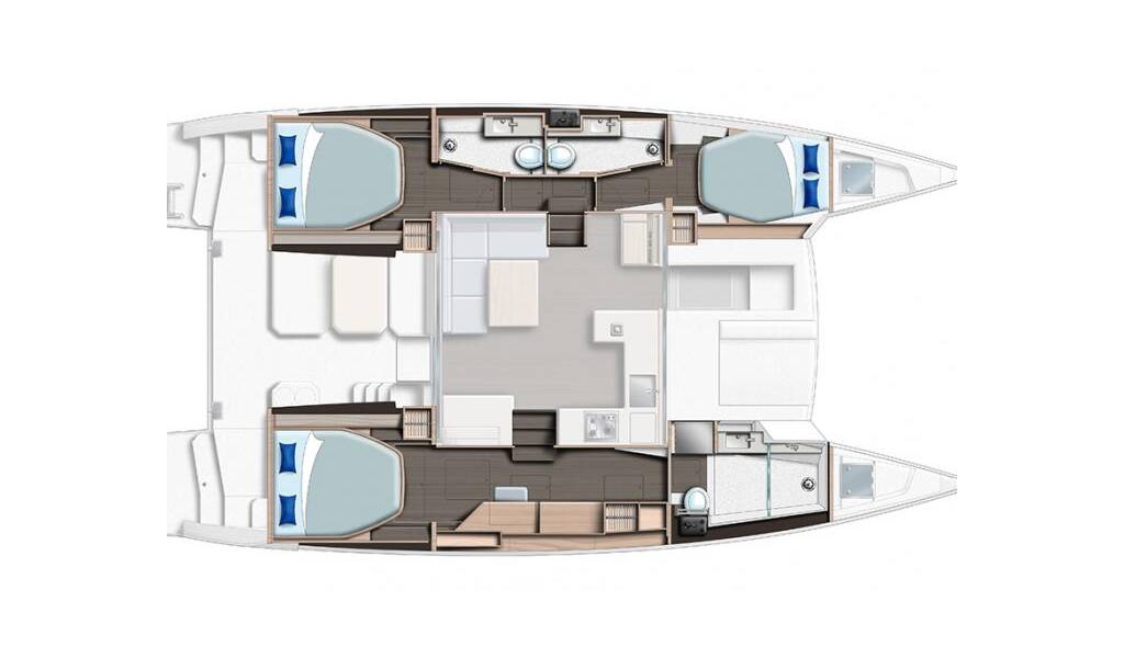 Katamarán Leopard 42 Freedom, rok spuštění na vodu 2025 kotví v marině St. Raphael, Provence-Alpes-Côte d'Azur, Francie. Počet kajut: 3 , může ubytovat celkem: 6 + 2 a má toalet: 3 . Povlečení a kuchyňské vybavení jsou zahrnuty v ceně.