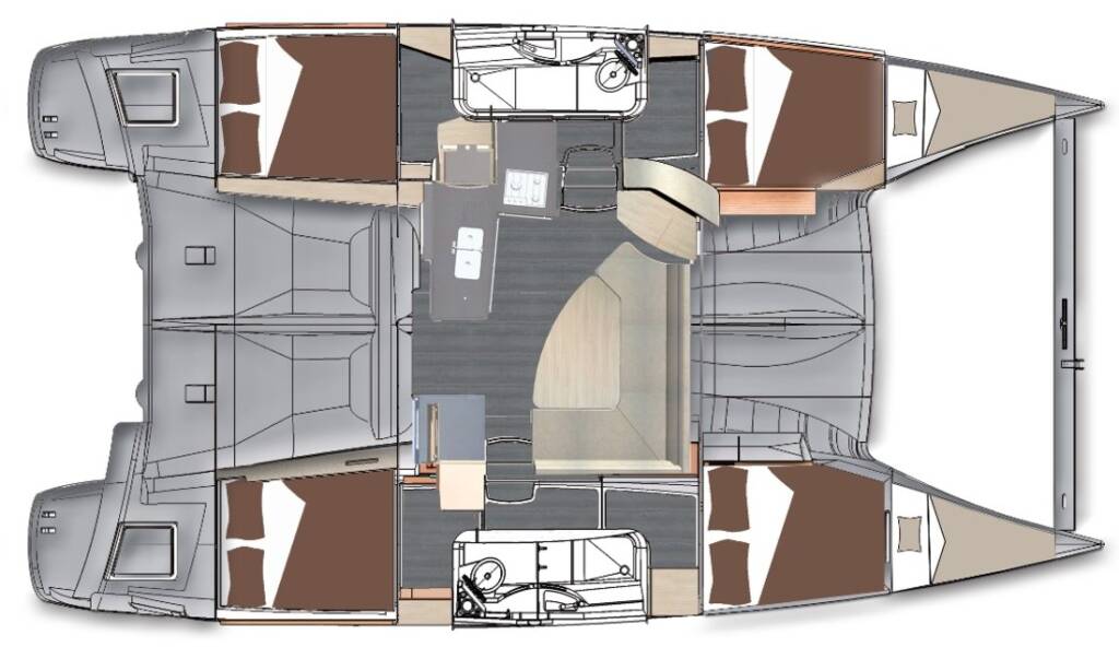 Katamarán Lipari 41 My Way, rok spuštění na vodu 2013 kotví v marině Kas Marina, Středozemí (Turecko), Turecko . Počet kajut: 3 + 1 , může ubytovat celkem: 6 + 2 a má toalet: 2 . Povlečení a kuchyňské vybavení jsou zahrnuty v ceně.