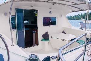 Katamarán Nautitech 40 Open Ti Kay, rok spuštění na vodu 2002 kotví v marině San Blas, Corazon de Jesus, San Blas, Panama. Počet kajut: 3 + 1 , může ubytovat celkem: 6 + 1 a má toalet: 2 . Povlečení a kuchyňské vybavení jsou zahrnuty v ceně.