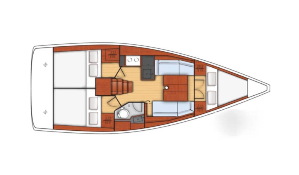 Plachetnice Oceanis 35.1 Malilu, rok spuštění na vodu 2021 kotví v marině Toulon, Vieille Darse, Provence-Alpes-Côte d'Azur, Francie. Počet kajut: 2 , může ubytovat celkem: 4 a má toalet: 1 . Povlečení a kuchyňské vybavení jsou zahrnuty v ceně.