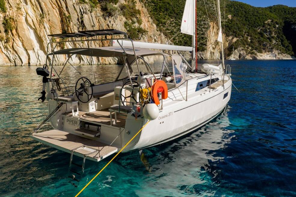 Plachetnice Oceanis 37.1 Piperi, rok spuštění na vodu 2024 kotví v marině Lefkas, D-Marin, Jónské ostrovy (Řecko), Řecko. Počet kajut: 3 , může ubytovat celkem: 6 a má toalet: 2 . Povlečení a kuchyňské vybavení jsou zahrnuty v ceně.