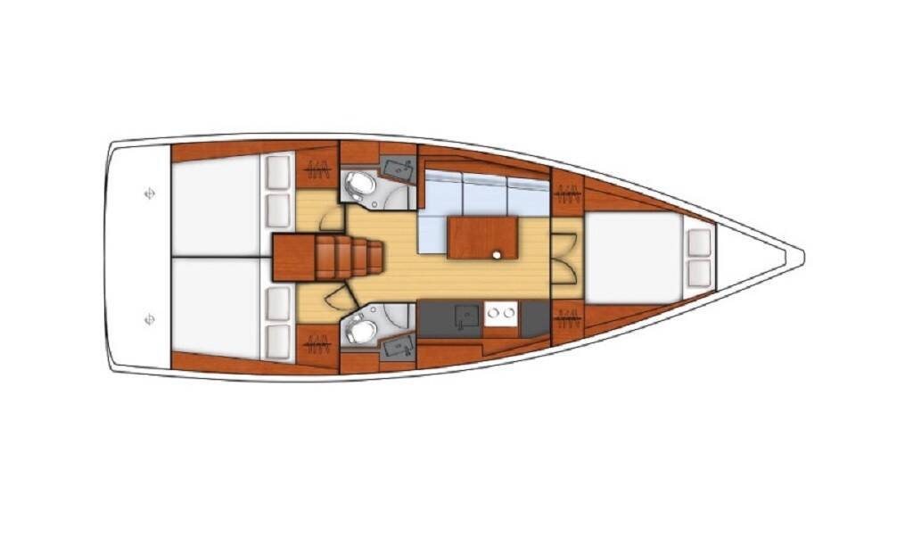 Plachetnice Oceanis 38.1 Anima Maris III, rok spuštění na vodu 2018 kotví v marině ACI Marina Split, Splitský region (Chorvatsko), Chorvatsko. Počet kajut: 3 , může ubytovat celkem: 6 + 2 a má toalet: 2 . Povlečení a kuchyňské vybavení jsou zahrnuty v ceně.