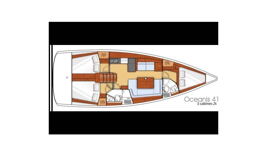 Plachetnice Oceanis 41 Warrior, rok spuštění na vodu 2013 kotví v marině Corfu, Gouvia Marina, Jónské ostrovy (Řecko), Řecko. Počet kajut: 3 , může ubytovat celkem: 6 a má toalet: 2 . Povlečení a kuchyňské vybavení jsou zahrnuty v ceně.