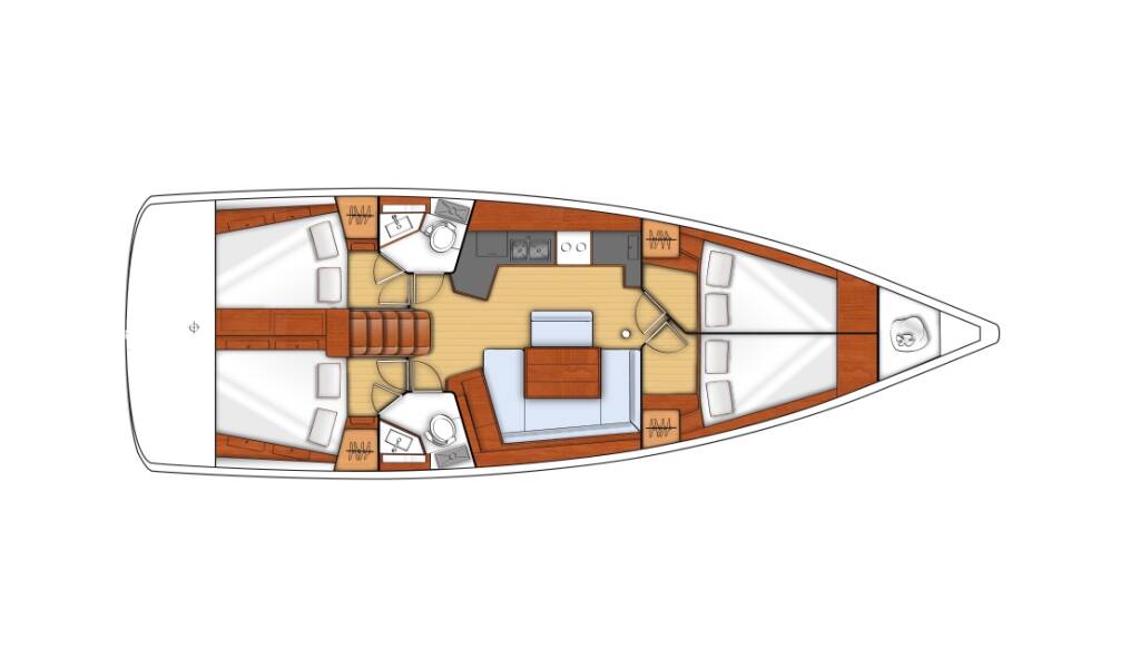 Plachetnice Oceanis 45 Golden Dreams, rok spuštění na vodu 2012 kotví v marině Sukosan, D-Marin Dalmacija Marina, Zadarský region (Chorvatsko), Chorvatsko. Počet kajut: 4 , může ubytovat celkem: 8 + 2 a má toalet: 2 . Povlečení a kuchyňské vybavení jsou zahrnuty v ceně.