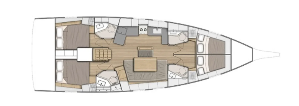 Plachetnice Oceanis 46.1 Glykeria, rok spuštění na vodu 2020 kotví v marině Lefkas, D-Marin, Jónské ostrovy (Řecko), Řecko. Počet kajut: 4 , může ubytovat celkem: 8 + 2 a má toalet: 4 . Povlečení a kuchyňské vybavení jsou zahrnuty v ceně.