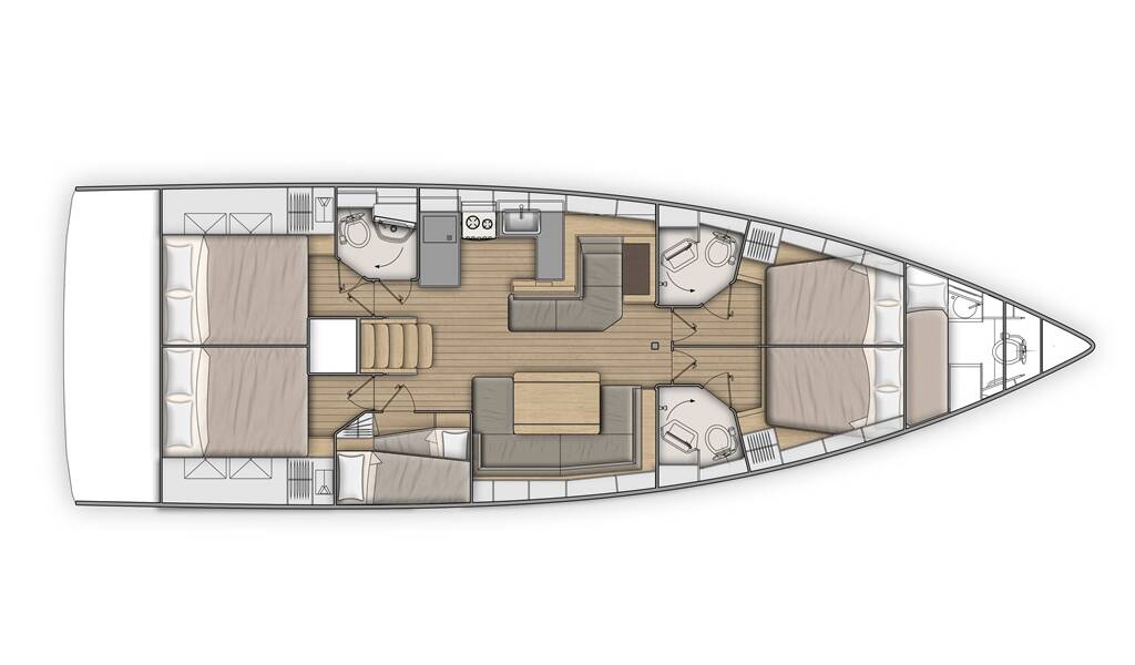Plachetnice Oceanis 51.1 Kos 51.1, rok spuštění na vodu 2018 kotví v marině Lefkas, D-Marin, Jónské ostrovy (Řecko), Řecko. Počet kajut: 5 + 1 , může ubytovat celkem: 10 + 1 a má toalet: 3 + 1 . Povlečení a kuchyňské vybavení jsou zahrnuty v ceně.