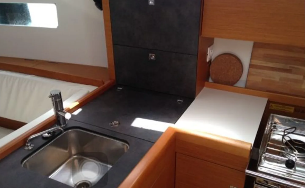 Plachetnice Sun Odyssey 349 Papatheo, rok spuštění na vodu 2016 kotví v marině Lefkas, D-Marin, Jónské ostrovy (Řecko), Řecko. Počet kajut: 3 , může ubytovat celkem: 6 a má toalet: 1 . Povlečení a kuchyňské vybavení jsou zahrnuty v ceně.