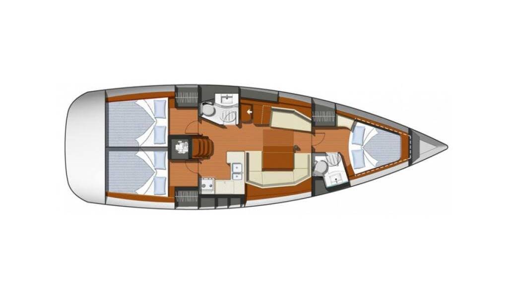 Plachetnice Sun Odyssey 42i Tempo, rok spuštění na vodu 2008 kotví v marině Marmaris, Netsel Marina, Egejský region (Turecko), Turecko . Počet kajut: 3 , může ubytovat celkem: 6 a má toalet: 2 . Povlečení a kuchyňské vybavení jsou zahrnuty v ceně.