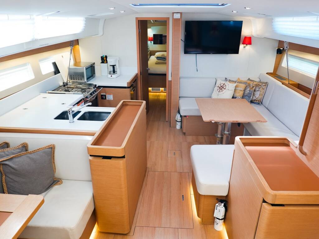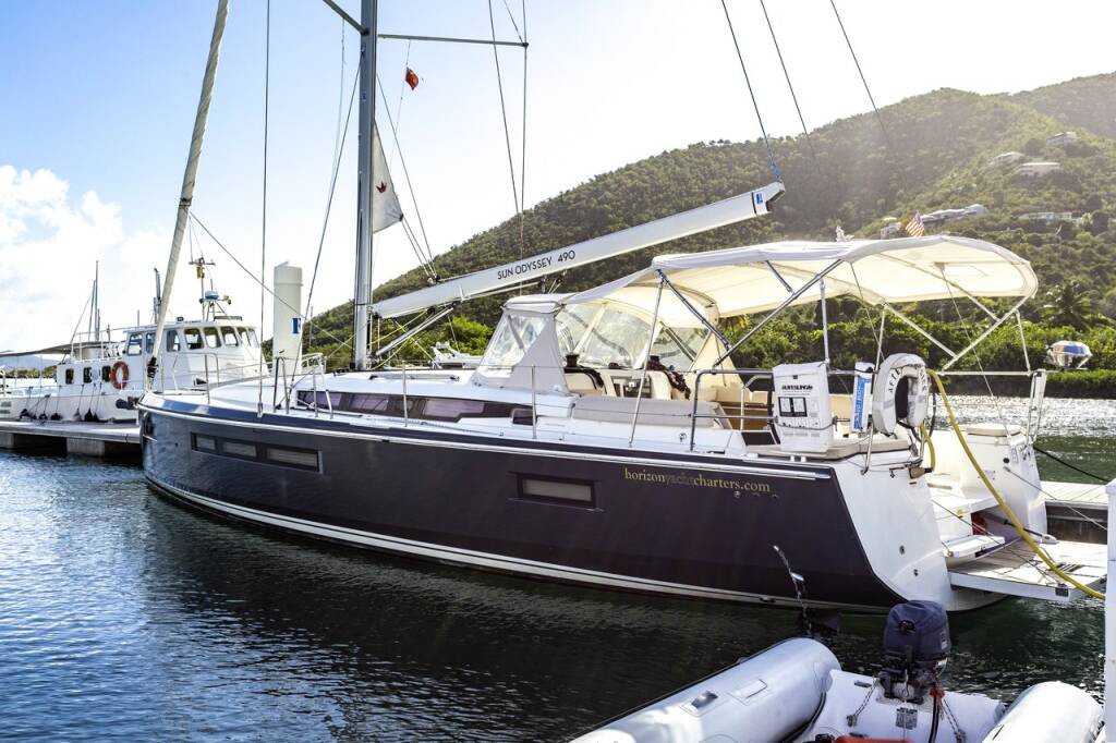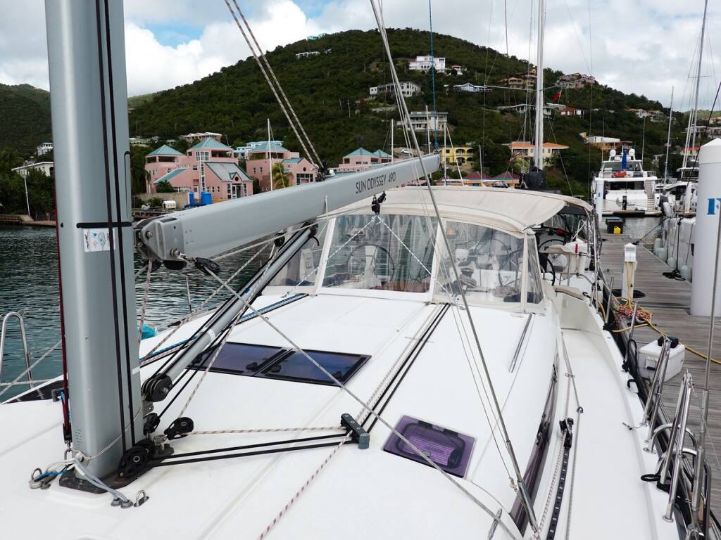 Plachetnice Sun Odyssey 490 After Physics, rok spuštění na vodu 2020 kotví v marině BVI, Tortola, Nanny Cay Marina, Britské Panenské Ostrovy (BVI), Britské Panenské ostrovy. Počet kajut: 3 , může ubytovat celkem: 6 a má toalet: 2 . Povlečení a kuchyňské vybavení jsou zahrnuty v ceně.