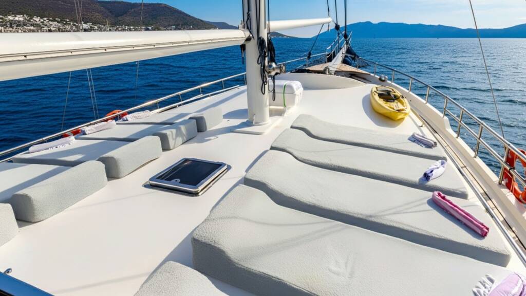 Gulet The Blue Sea The Blue Sea, rok spuštění na vodu 2003 kotví v marině Belediye Marina, Egejský region (Turecko), Turecko . Počet kajut: 5 , může ubytovat celkem: 12 a má toalet: 5 . Povlečení a kuchyňské vybavení jsou zahrnuty v ceně.