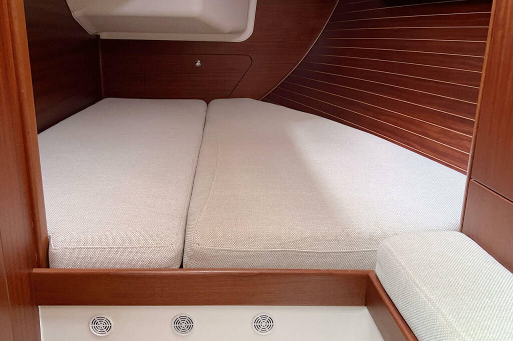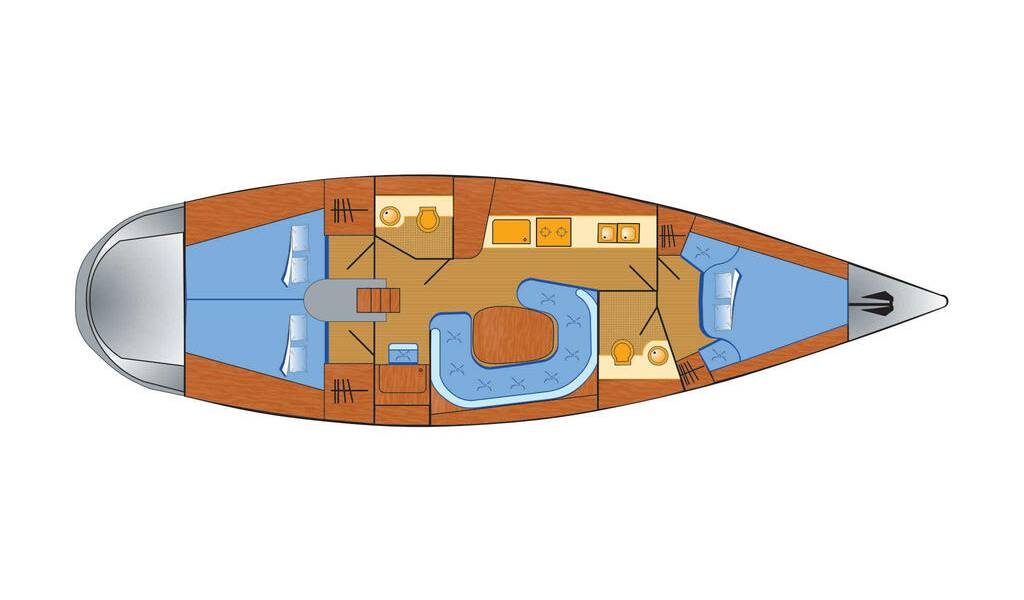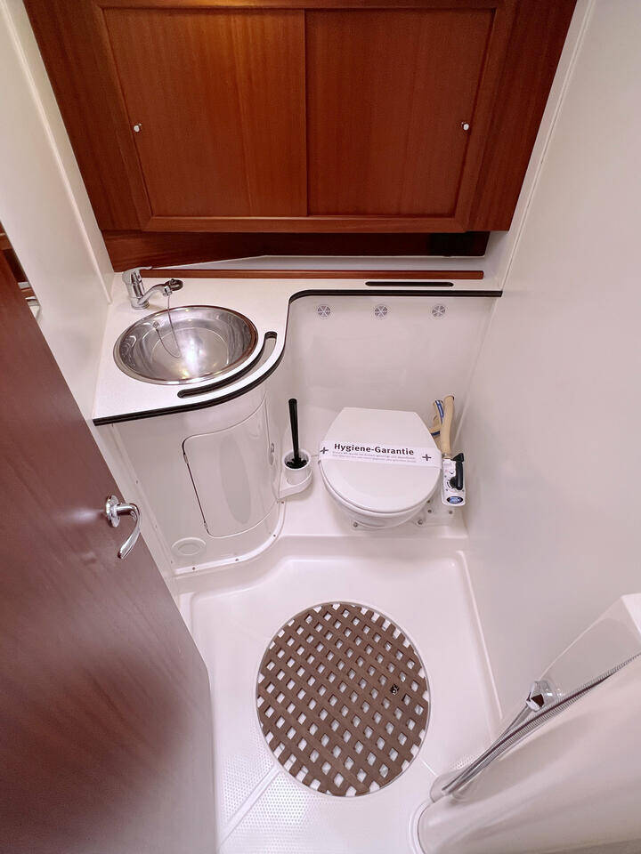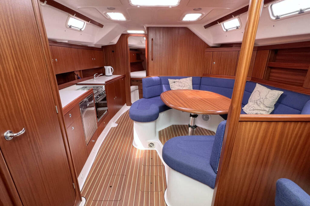 Plachetnice Vilm 41 cruiser Karoline, rok spuštění na vodu 2012 kotví v marině Barth, Yachtwerft Ramin, Mecklenburg, Německo. Počet kajut: 3 , může ubytovat celkem: 6 a má toalet: 2 . Povlečení a kuchyňské vybavení jsou zahrnuty v ceně.