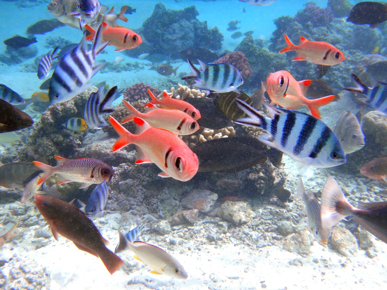 Pannetone - Známé místo s vysokou šancí spatřit manty při krmení mimo atol při odlivu. Při přílivu na hřebeni atolu se objevuje „Shark City“ s desítkami velkých žraloků šedých útesových.