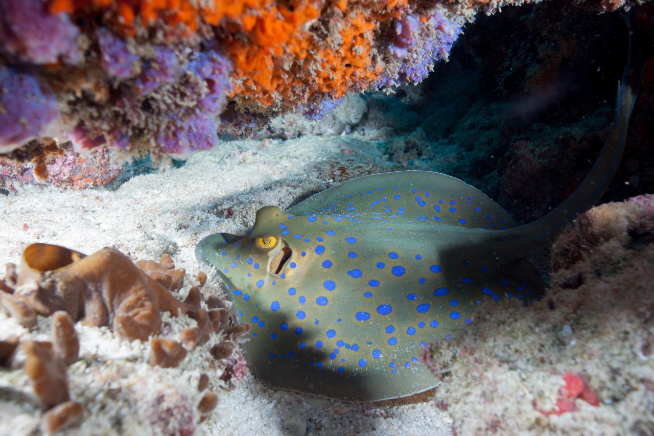 Hulhumale Neru – murény, rejnoci, leopardí a skvrnití rejnoci.