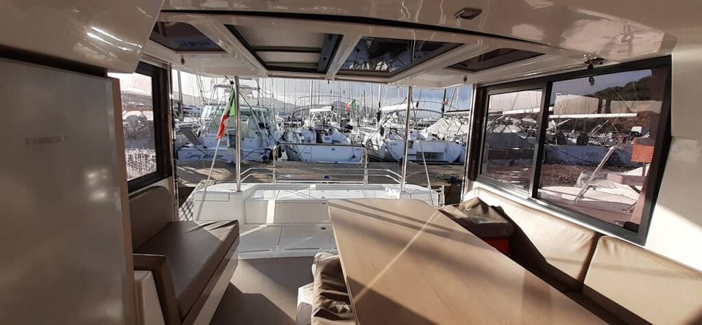 Catamaran Bali 4.1 Eleftheria, built in 2019 is anchored in the Portisco, Sardinia, Italy. It has 4 cabins, can accommodate 8 + 2 people and has 4 toilets. Bed linen and kitchen equipment are included in the price.